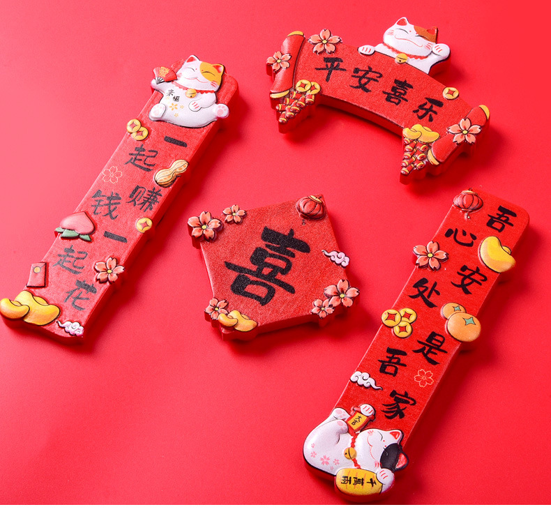 National Tide New Year Refrigerator Sticker Creative Funny Resin Refrigerator Sticker Cartoon Magnetic Spring Festival Decorative Refrigerator Sticker Wholesale